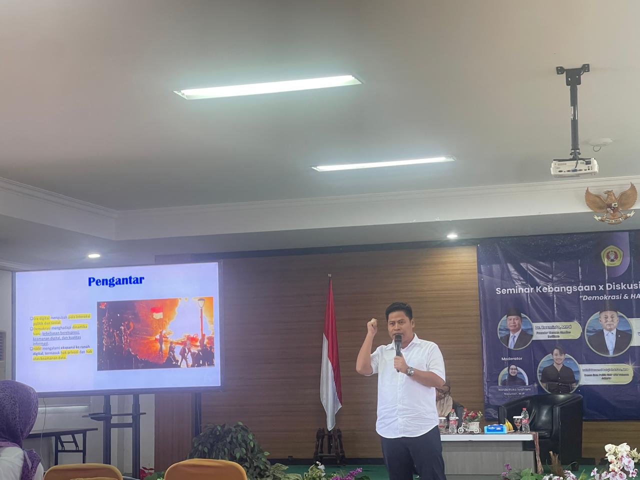 Jakarta – Founder Human Studies Institut (HSI), Rasminto, kembali menegaskan bahwa distorsi informasi mengenai Papua di ruang digital dapat memperkeruh situasi dan memperluas ketegangan sosial. Hal tersebut ia sampaikan dalam Seminar Kebangsaan bertajuk “Demokrasi dan HAM di Era Digital” yang digelar FISIP UPN Veteran Jakarta di Auditorium Tanah Airku, Kampus Limo, Jumat (28/11/2025).