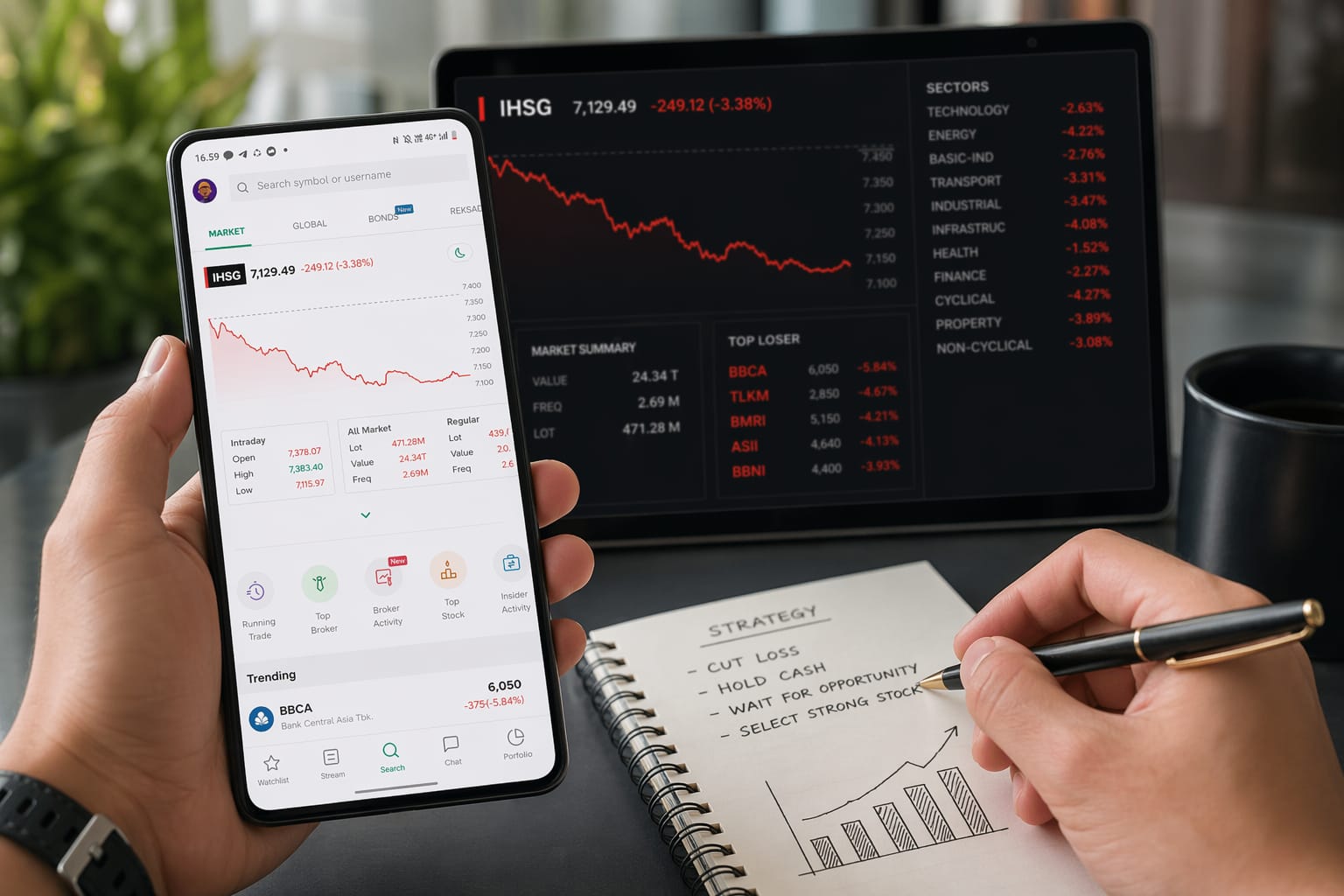 Koreksi pasar sering kali menjadi fase seleksi alami. Trader yang panik cenderung keluar tanpa rencana, sementara trader disiplin justru mulai menyusun strategi, mengamati saham potensial, dan menyiapkan dana untuk momentum rebound.
